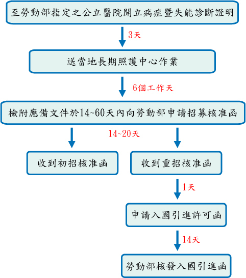 - 外籍看護工期滿前四個月,雇主可辦理重新招募許可,惟仍須具備上述申請條件。